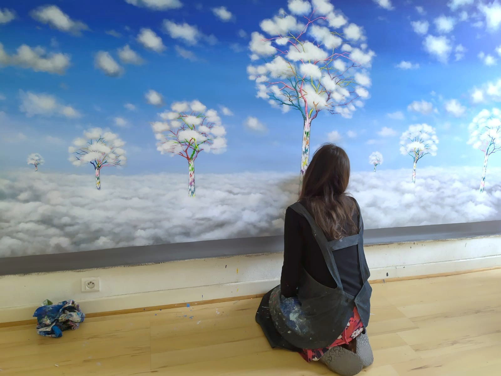 Inspirée par les ciels de William Turner et de John Constable, par les flous de Gerhard Richter, ainsi que les œuvres surréalistes de René Magritte ou Salvador Dali, l'artiste crée des paysages qui invitent au voyage, à la contemplation, à l'« être là ».